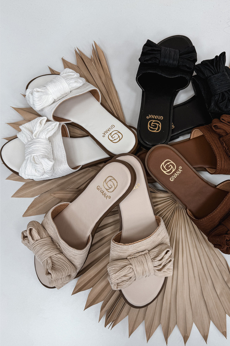 Moteriškos šlepetės su plačiais kulniukais ir kaspinais, baltos spalvos Amivelle