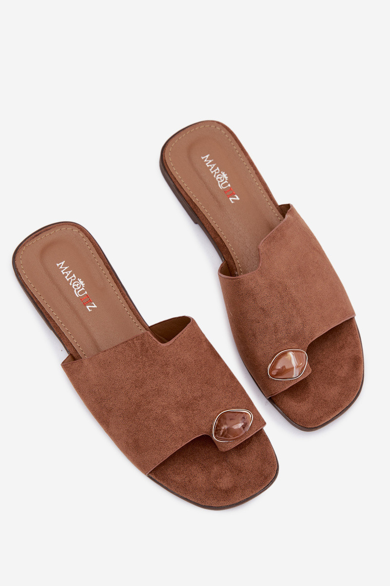 Moteriškos žemos šlepetės su puošniomis detalėmis iš dirbtinio zomšo, rudos spalvos, Selavine