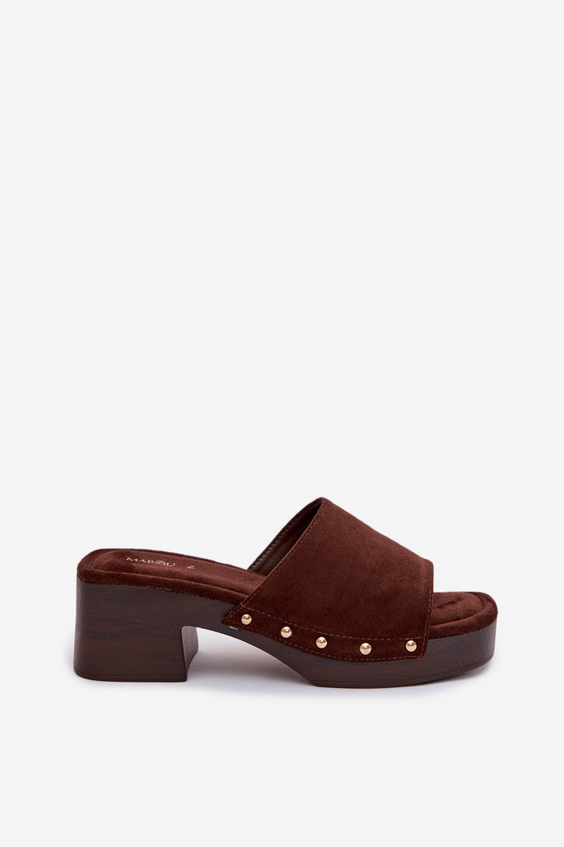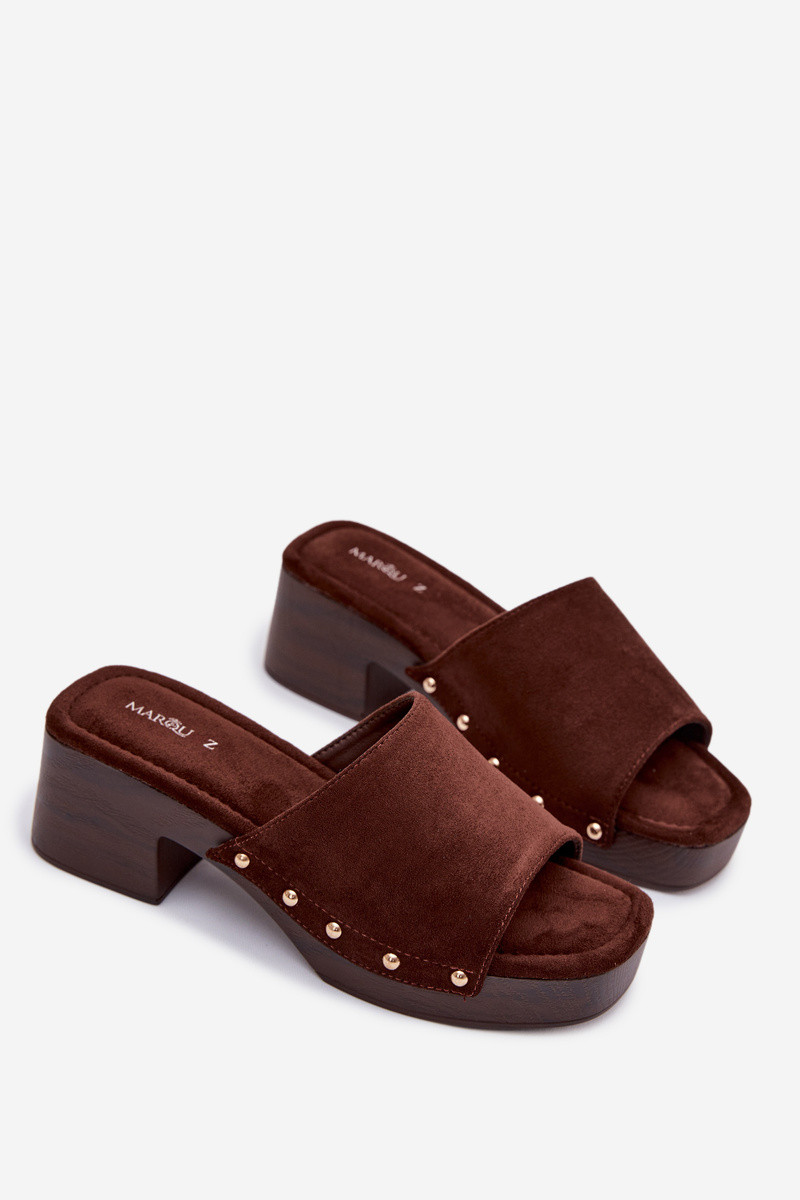 Moteriškos šlepetės klokelės su aukso spalvos smeigėmis šokoladinės spalvos Davessa