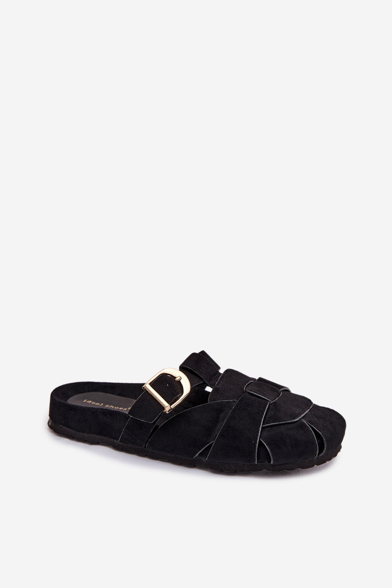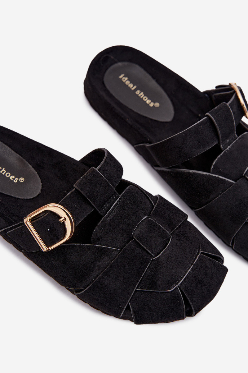 Moteriškos šlepetės Mule su juostelėmis I Złotą su sagtimis juodos spalvos Ganelle