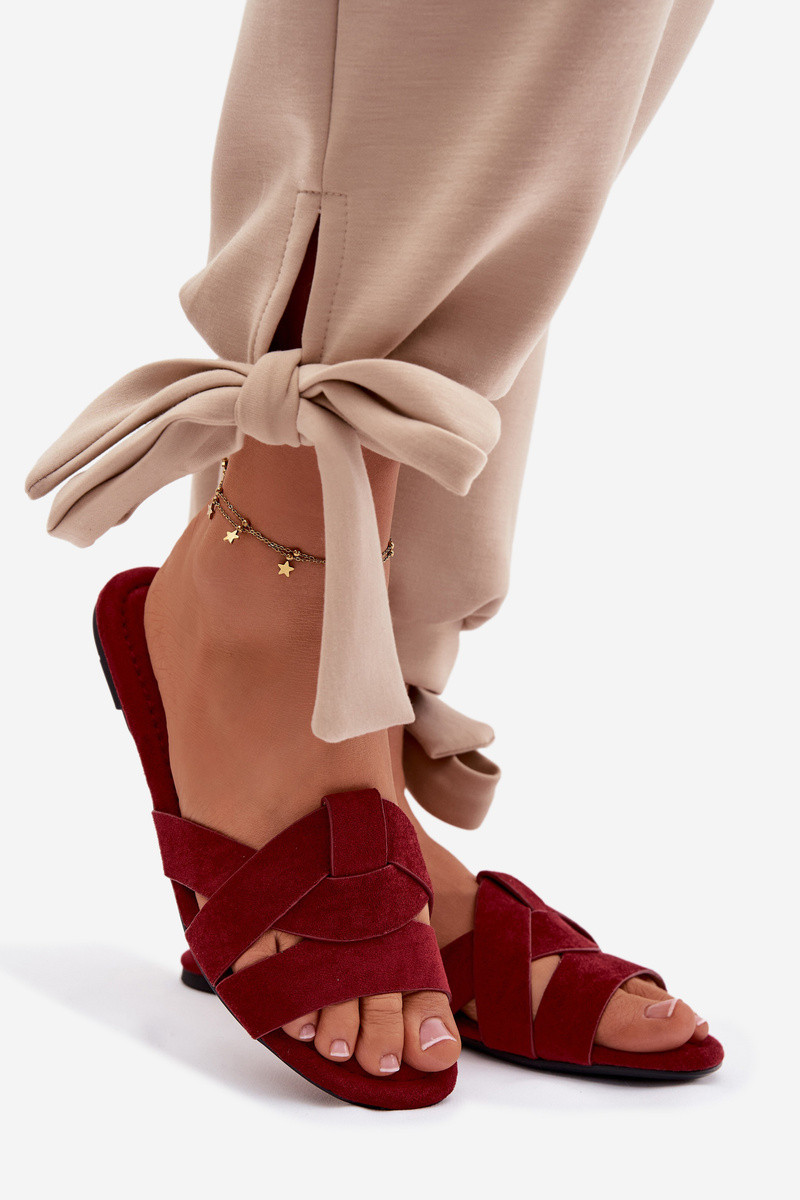 Lygiapadės moteriškos šlepetės su juostelėmis bordo spalvos Pavelle