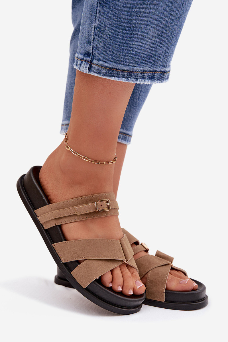 Moteriškos šlepetės su juostelėmis I Złotą su sagtimis smėlio spalvos Selorina