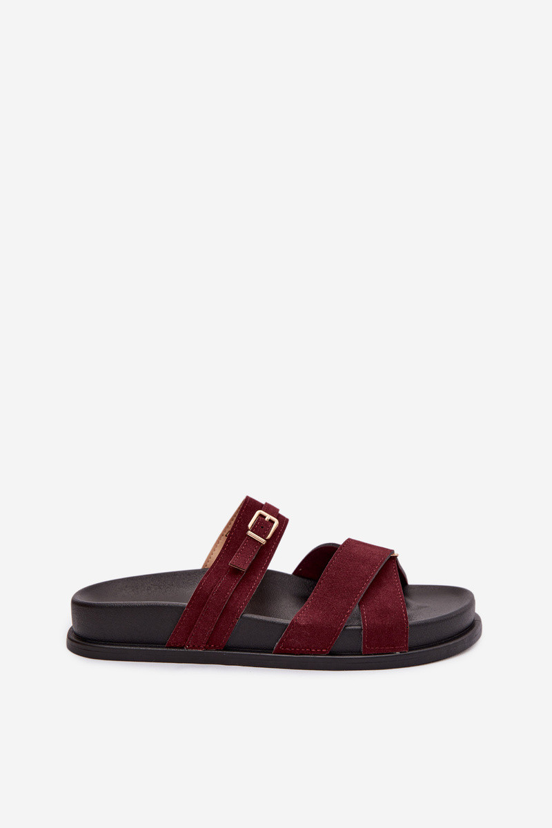 Moteriškos šlepetės su juostelėmis I Złotą su sagtimis bordo spalvos Selorina