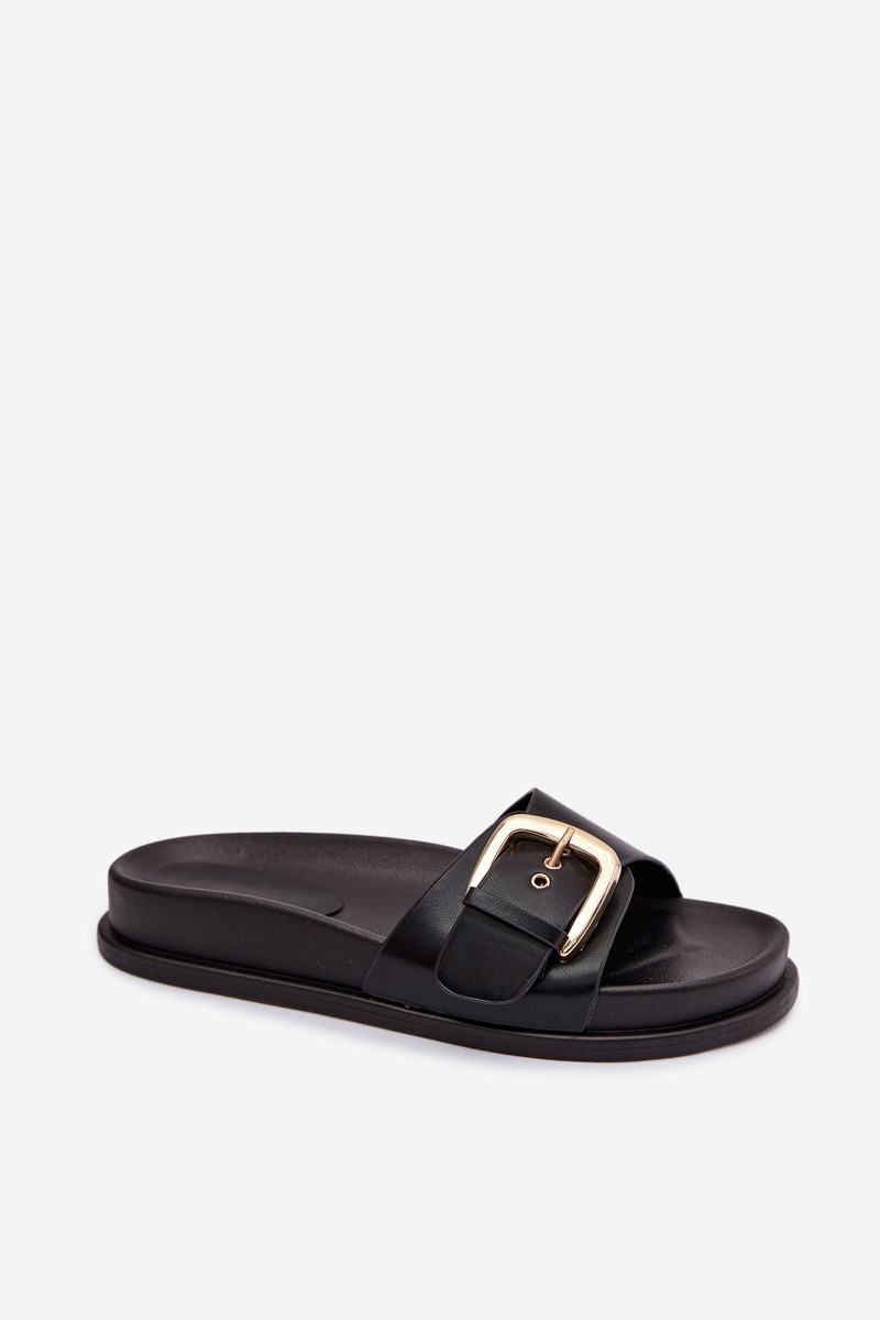 Moteriškos šlepetės su aukso spalvos sagtimis juodos spalvos Rosivana