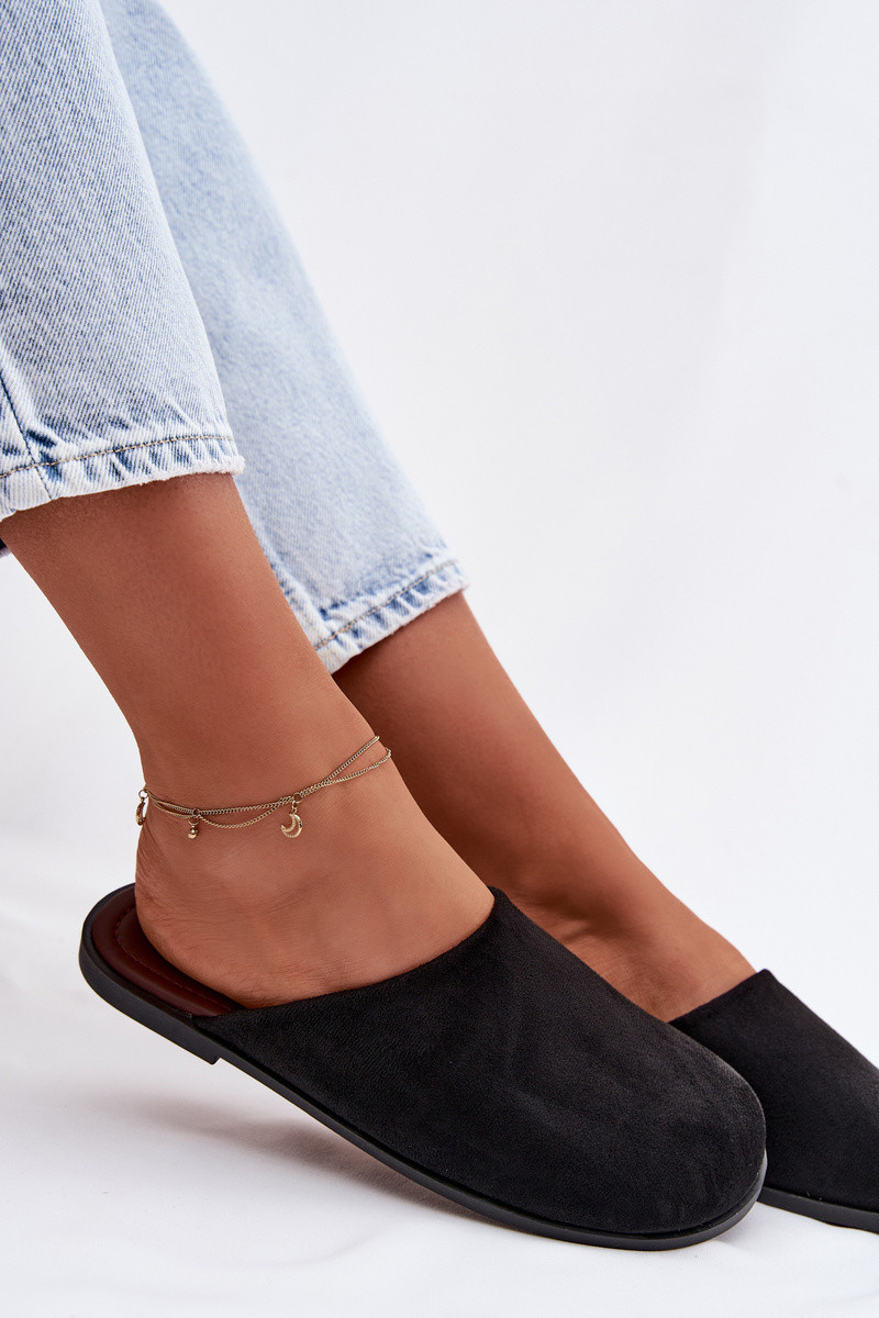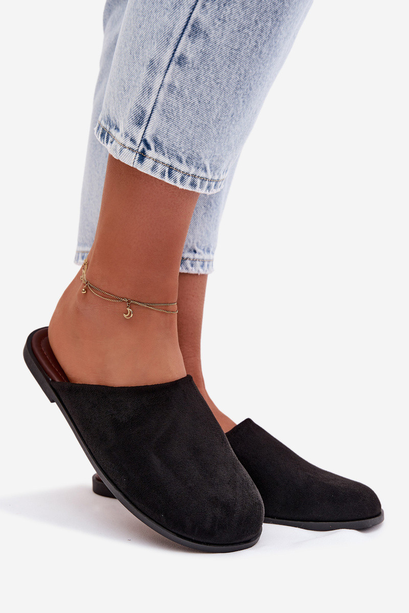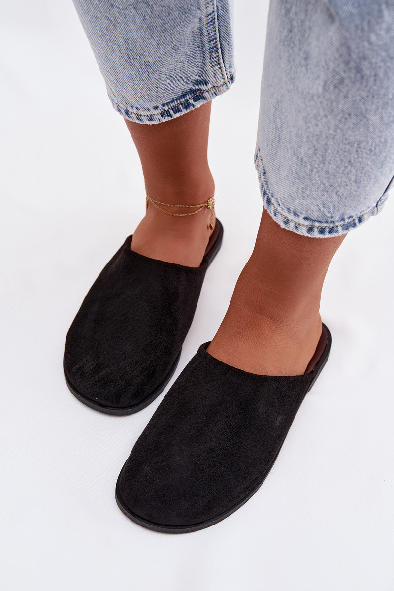 Šlepetės Moteriškas butassuiš eko zomšosu juodos spalvos Veronelle