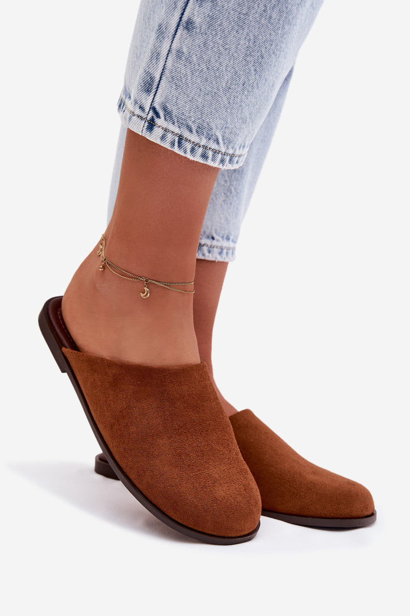 Moteriškos šlepetės iš dirbtinio zomšo rudos spalvos „Veronelle"