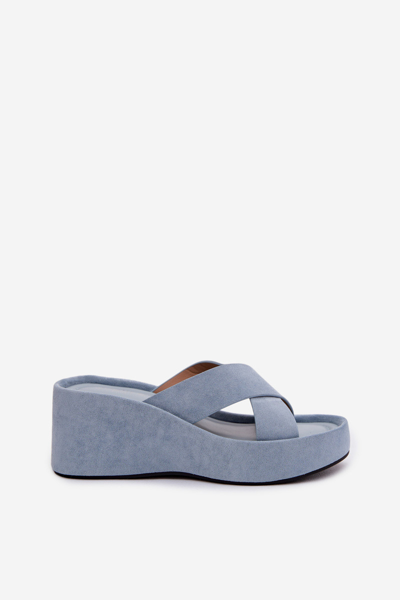 Moteriškos šlepetės Ant platformossuiš eko zomšosu mėlynos spalvos Calorine
