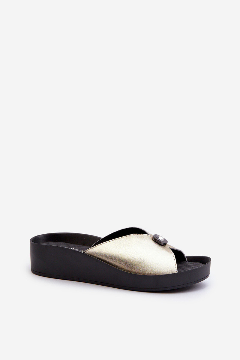 Odinės šlepetės Moteriškas su ornamentais aukso spalvos S.Barski KV27-027