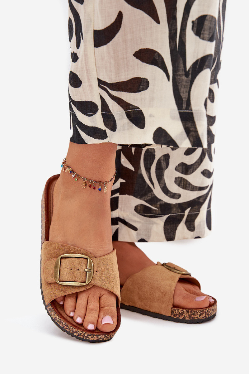 Moterų šlepetės Zavira su sagtimis ir platforma rudos spalvos