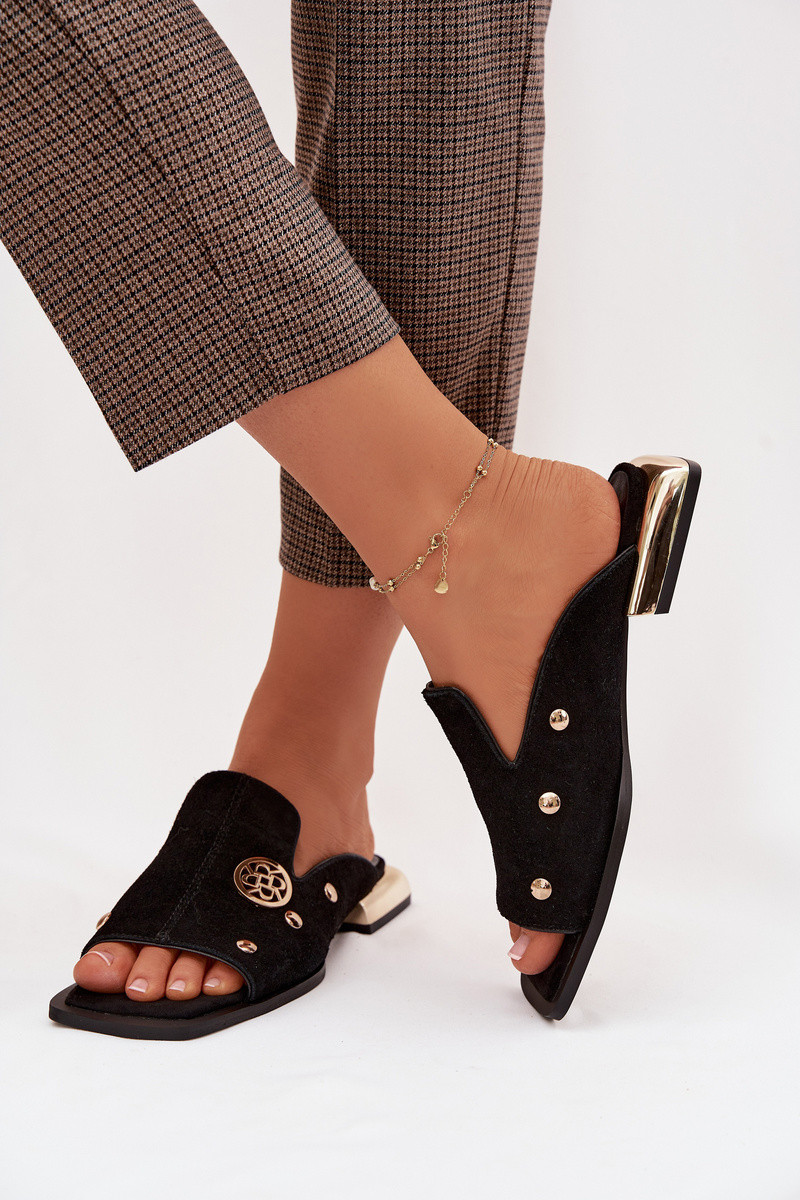 zomšinės šlepetės Ze aukso spalvosmi Ozdobami D&A CR61-3061 juodos spalvos