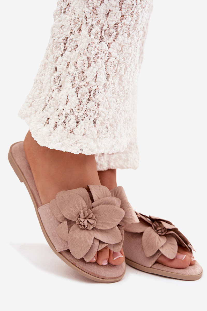 Smėlio spalvos moteriškos lygiapadės šlepetės su gėlių motyvais Elzoria