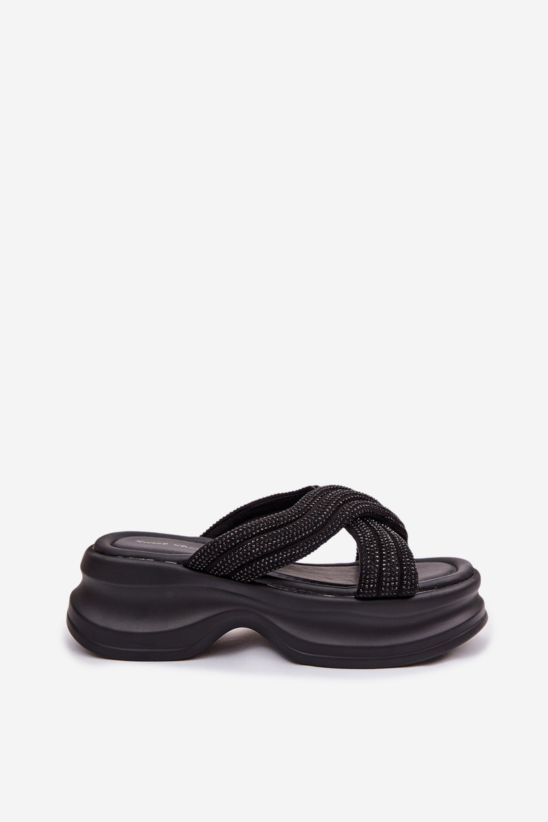 Moteriškos šlepetės su platforma Ze Zdobionymi Paskami juodos spalvos Eslira