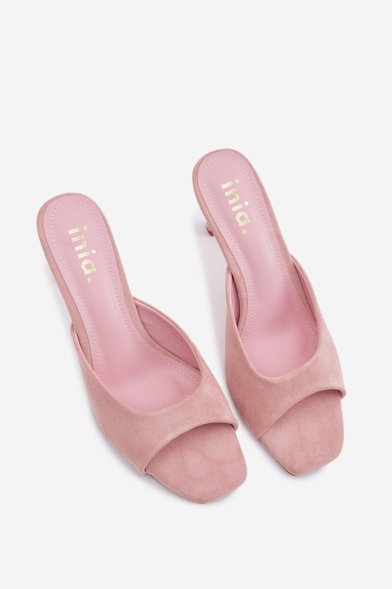 Moteriškos šlepetės su plonu kulniuku rožinės spalvos Revina