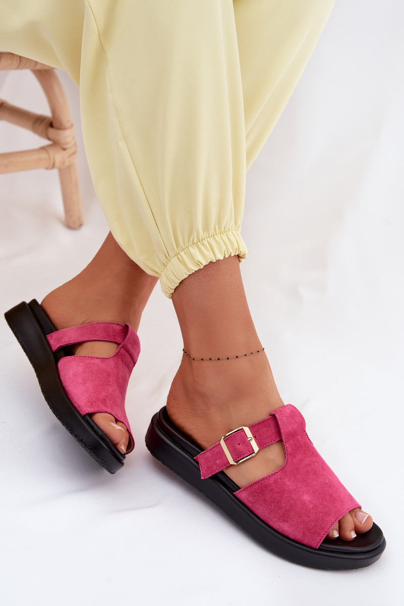 Moteriškos zomšinės šlepetės su platforma ir aukso spalvos sagtimis Zemela rožinės spalvos