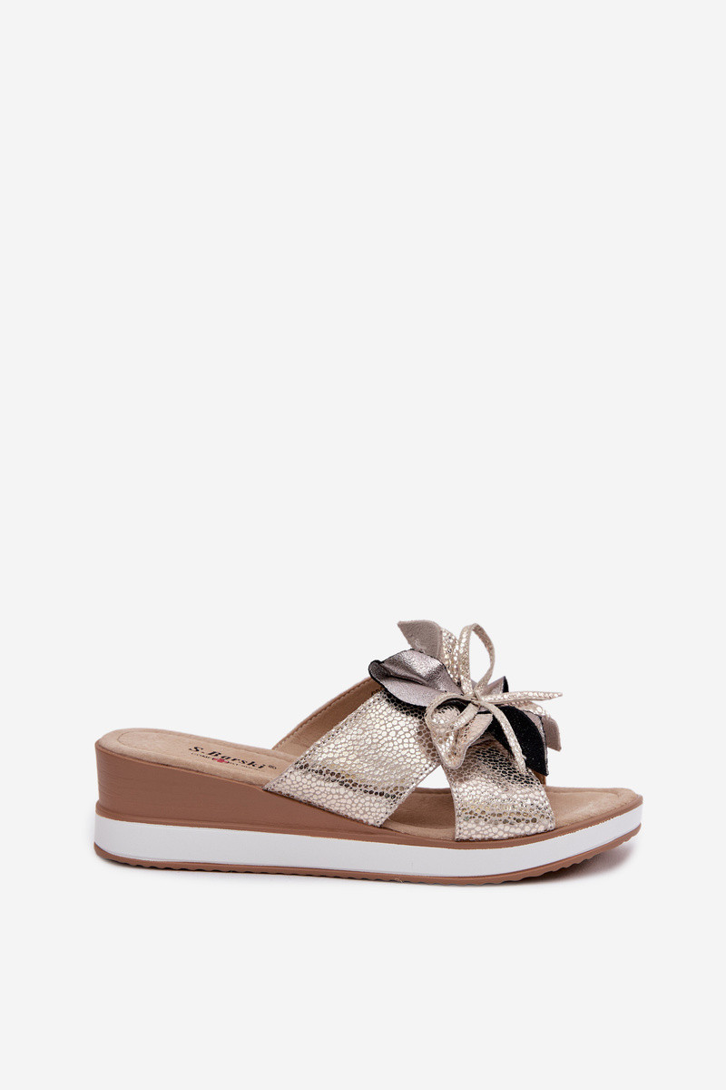 Odinės šlepetės su platformasuDekoracyjnym Gėlė S.Barski GR61-5989 aukso spalvos