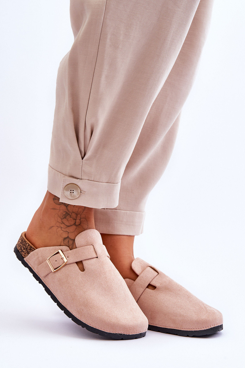 Zomšinės šlepetės ant kamštinės platformos smėlio spalvos Vellma
