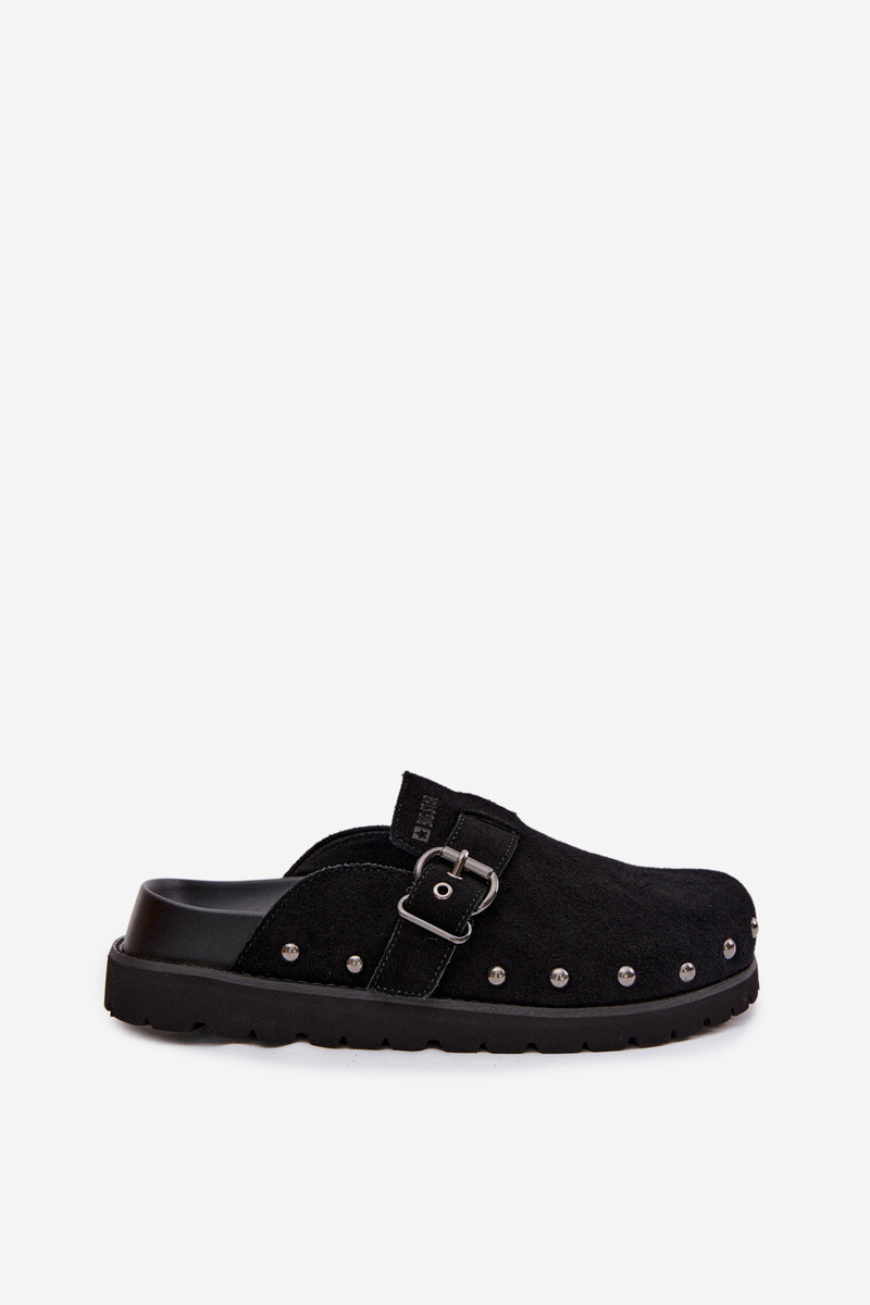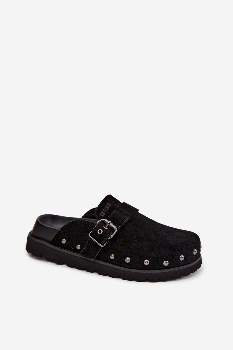Šlepetės Klumpės iš zomšos su platforma su kniedėmis I su sagtimis Big Star TT274951 juodos spalvos