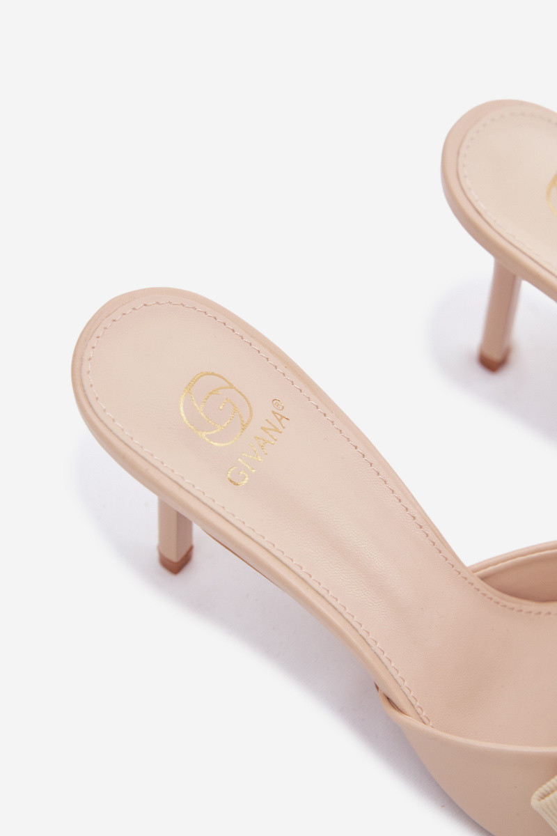 Moteriškos šlepetės su plonais kulniukais ir kaspinais geltonos spalvos Jelessa