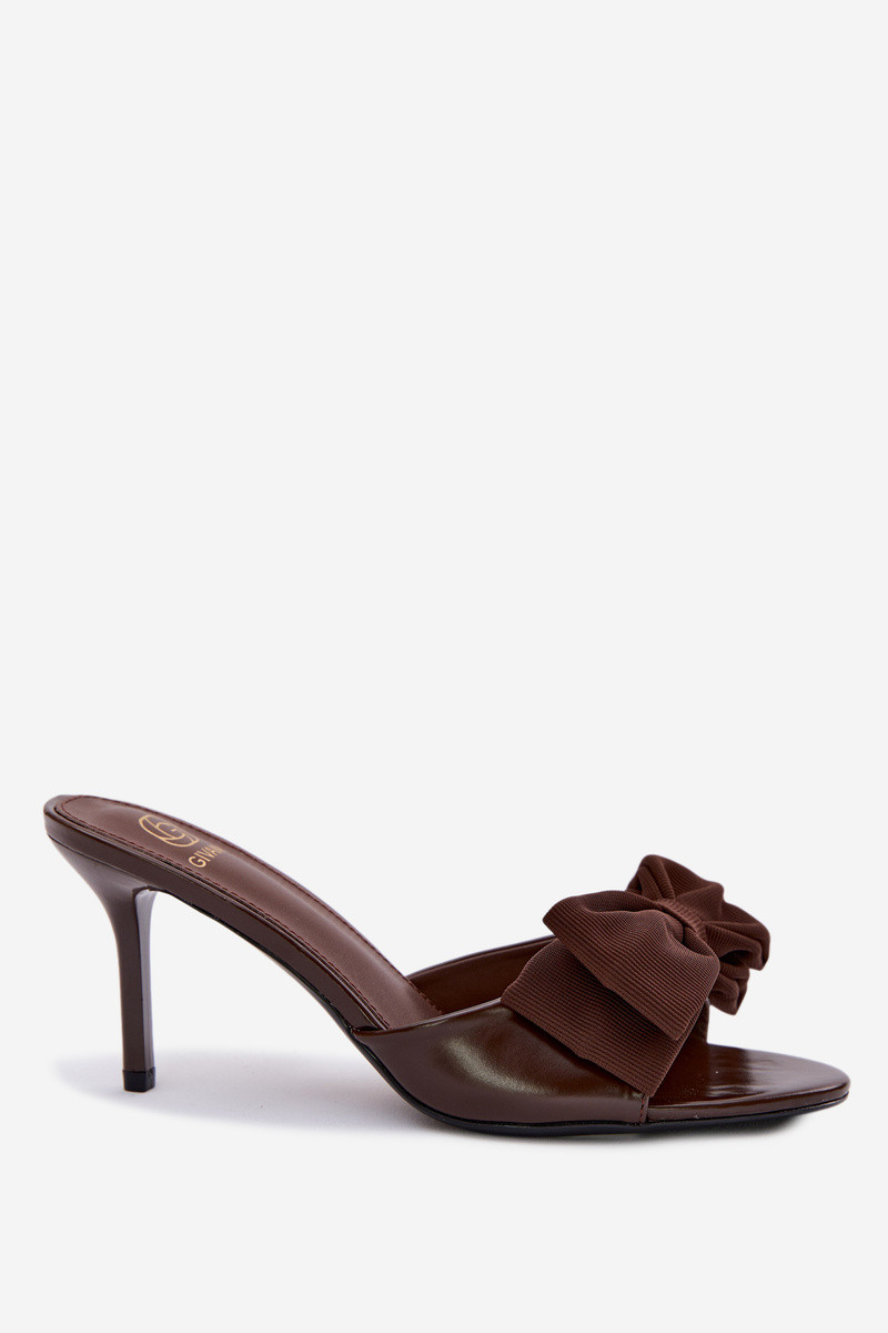 Moteriškos šlepetės su plonais kulniukais ir kaspinais šokolado spalvos Jelessa