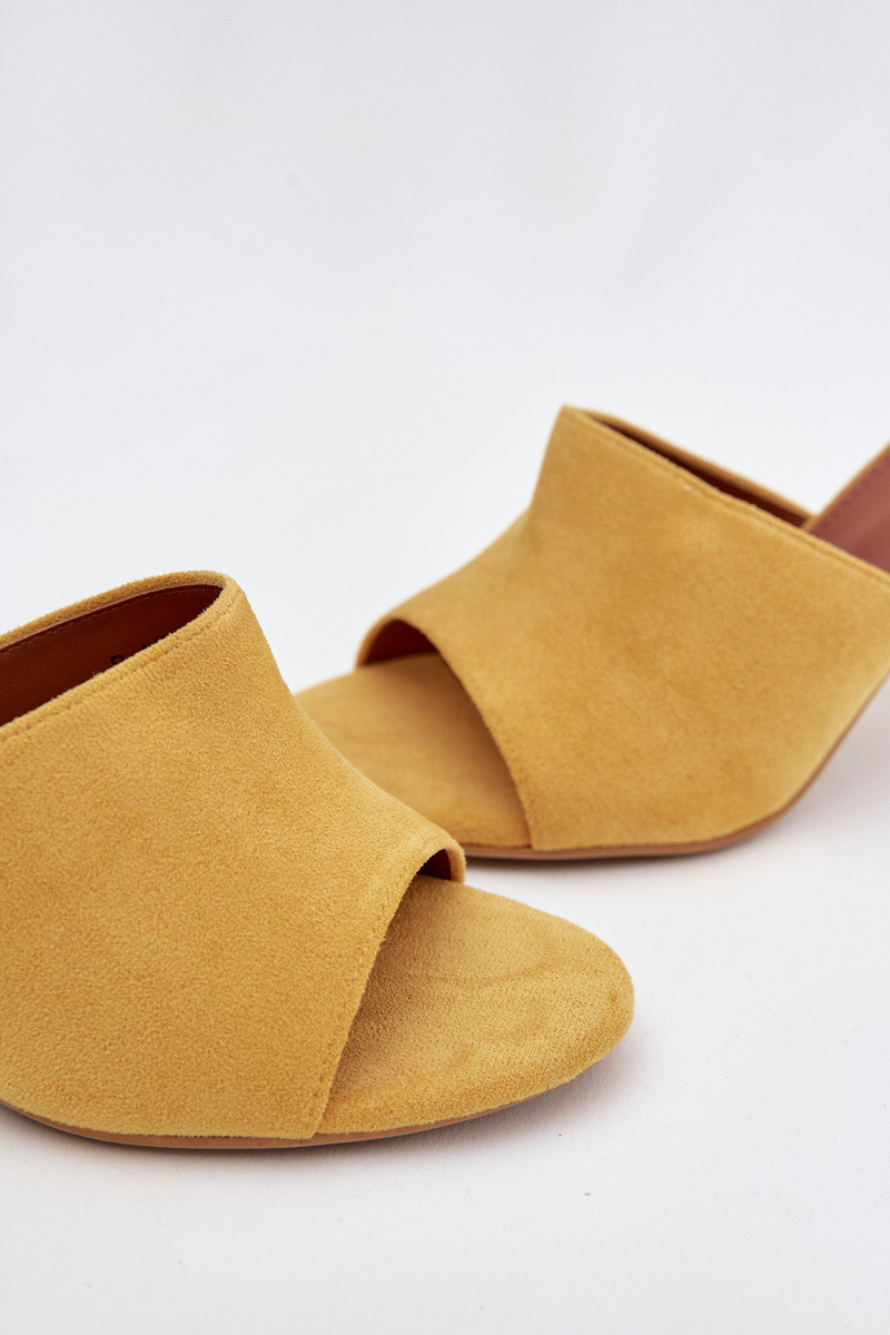 Moteriškos šlepetės su plonais kulniukaissuiš eko zomšosu geltonos spalvos Isolia