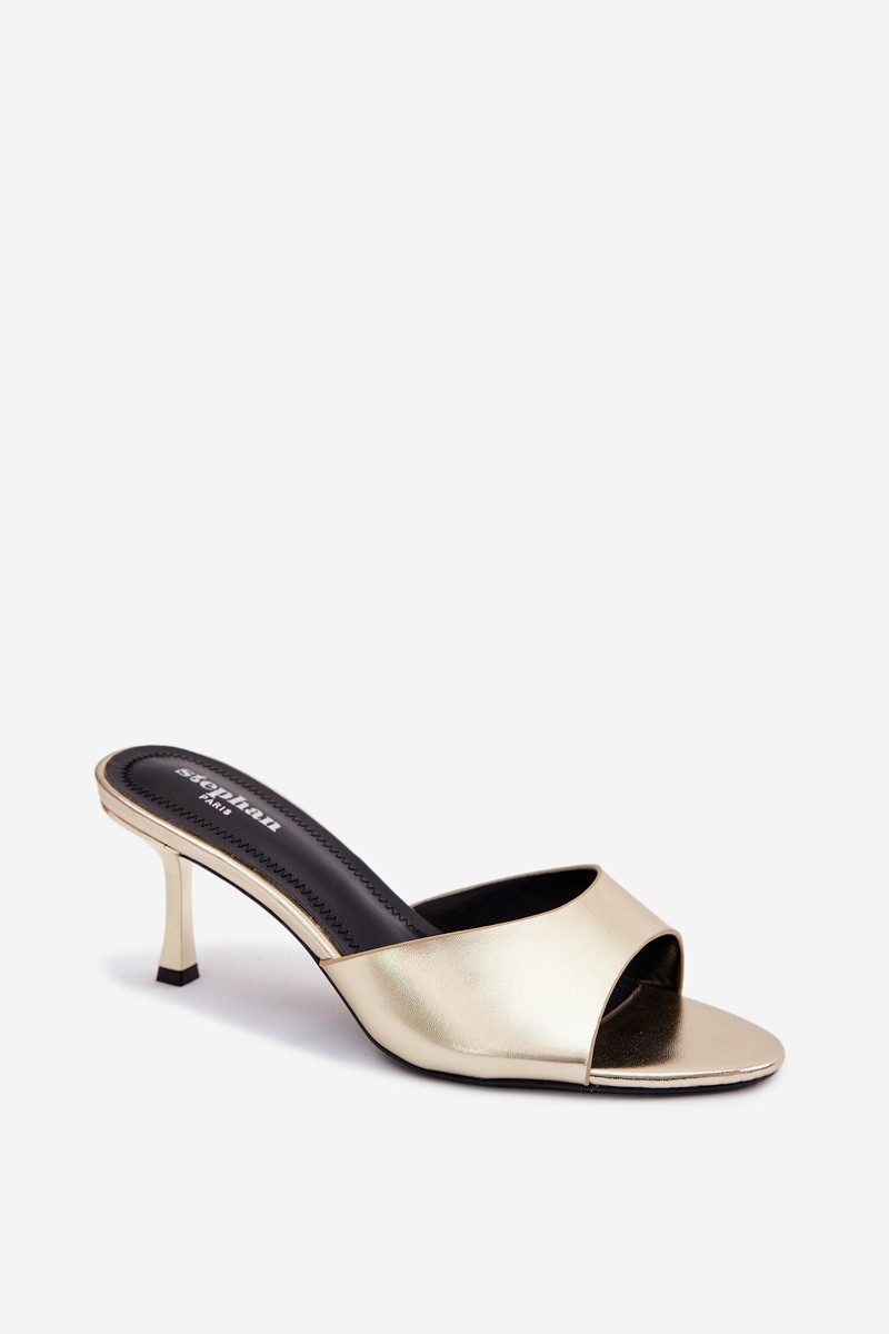 ŠlepetėssuImitacji Skóry su plonais kulniukais aukso spalvos Melissea