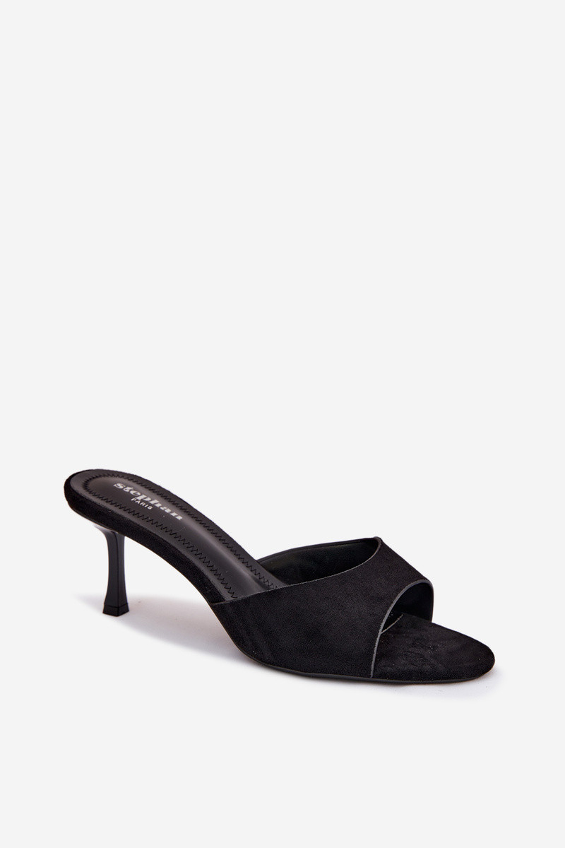 ŠlepetėssuImitacji iš zomšosu su plonais kulniukais juodos spalvos Melissea