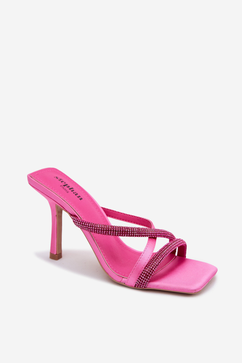 Moteriškos šlepetės su plonais kulniukais Juostelės su tviskančiomis akutėmis...
