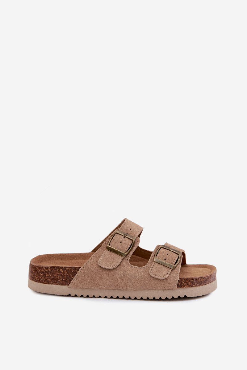 Rudos spalvos odinės zomšinės šlepetės su sagtimis Rosaliae