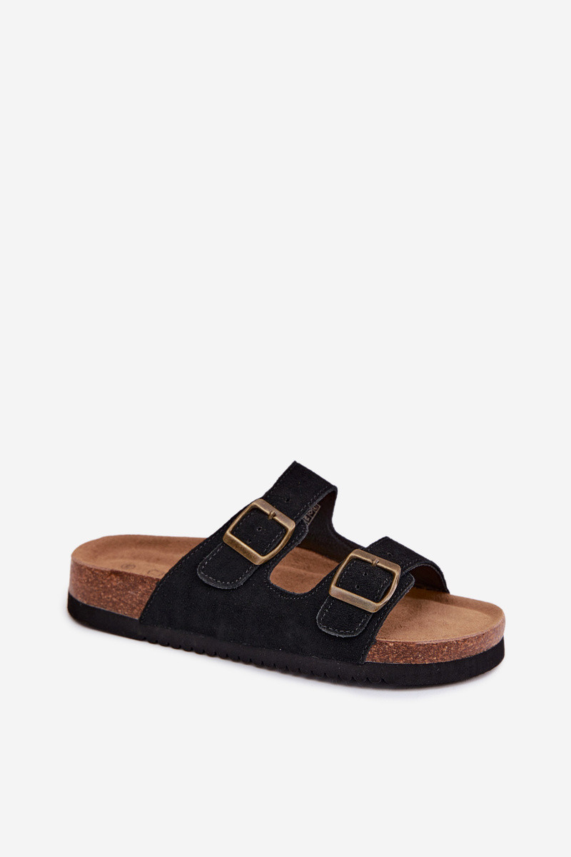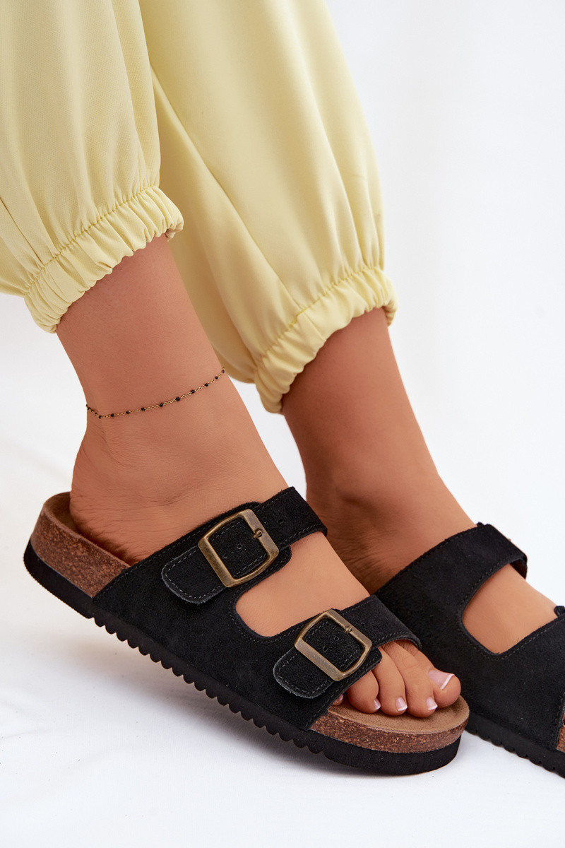 Juodos odinės zomšinės šlepetės su sagtimis Rosaliae