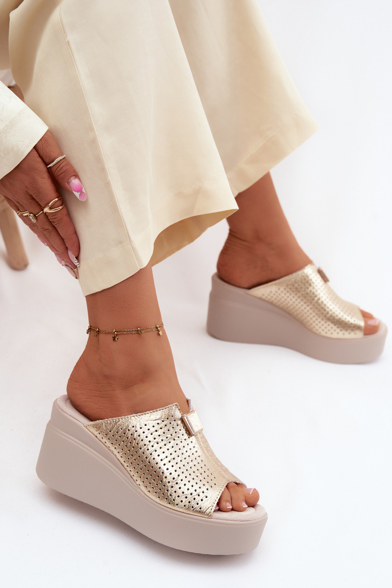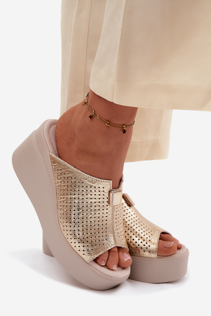 Moteriškos šlepetėssuĮjungtaturalnej Skóry su platforma Vinceza 95392 aukso spalvos