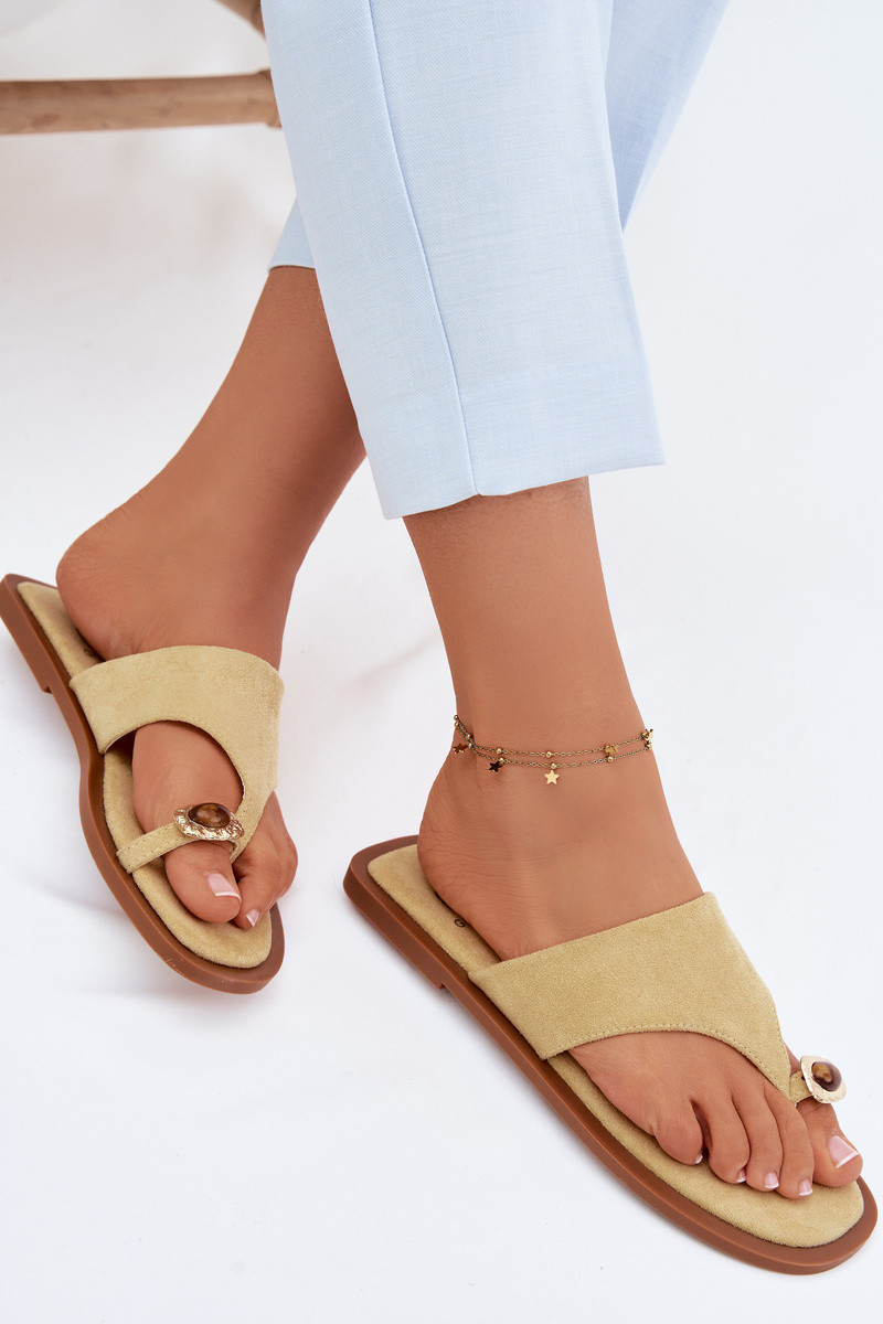Moteriškos šlepetės su puošniomis detalėmis smėlio spalvos Fedira