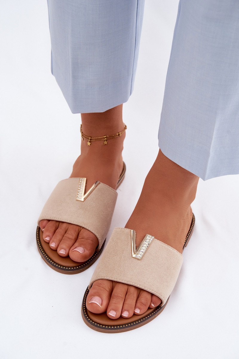 Šlepetės Moteriškas butas Su puošniais Detalem V smėlio spalvos Nelmira