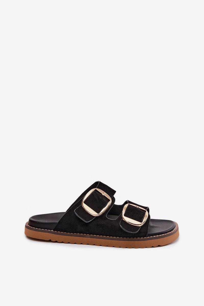 Moteriškos šlepetėssuImitacji iš zomšosu aukso spalvos su sagtelėmis chaki spalvos Averia