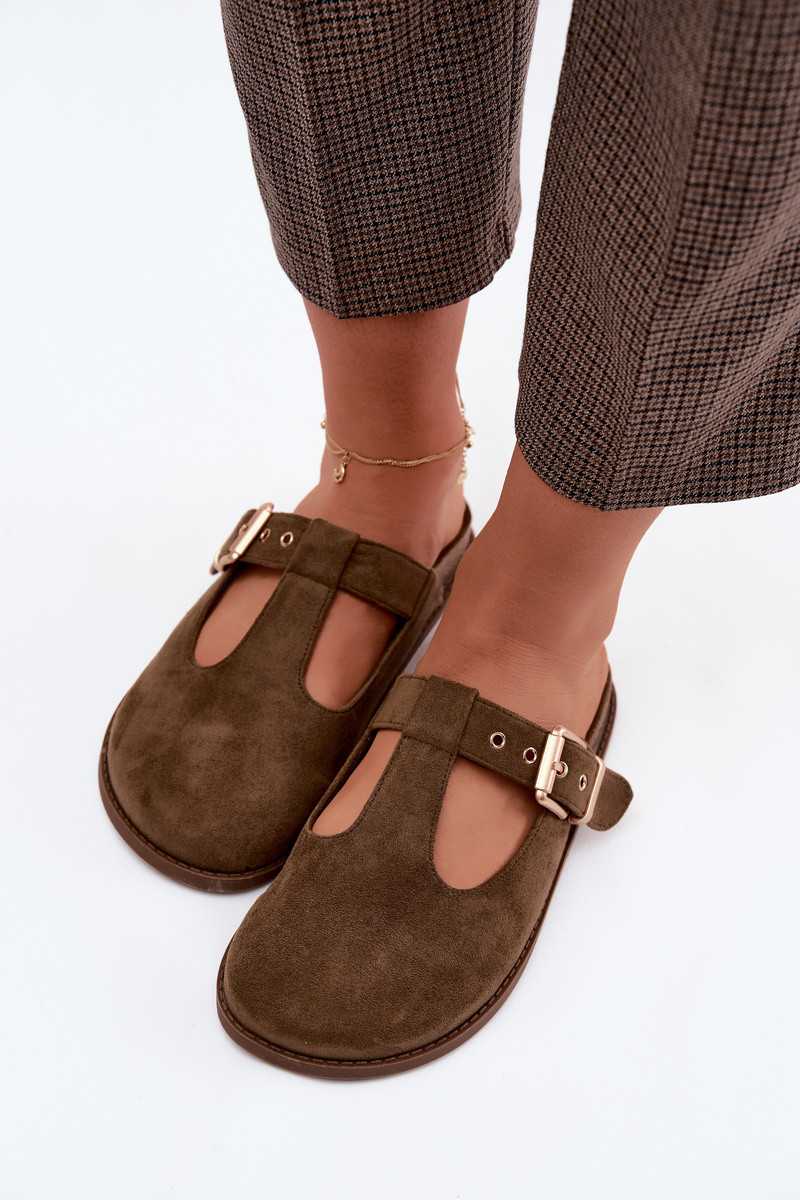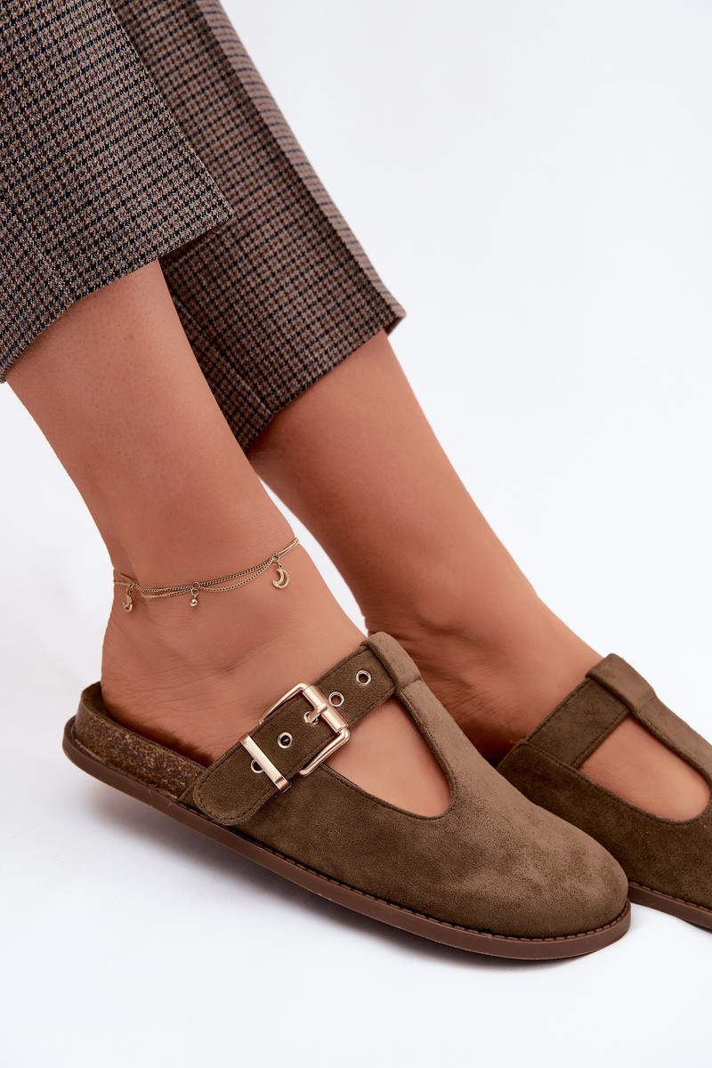 Moteriškos šlepetės MulesuImitacji iš zomšosu chaki spalvos Melvia