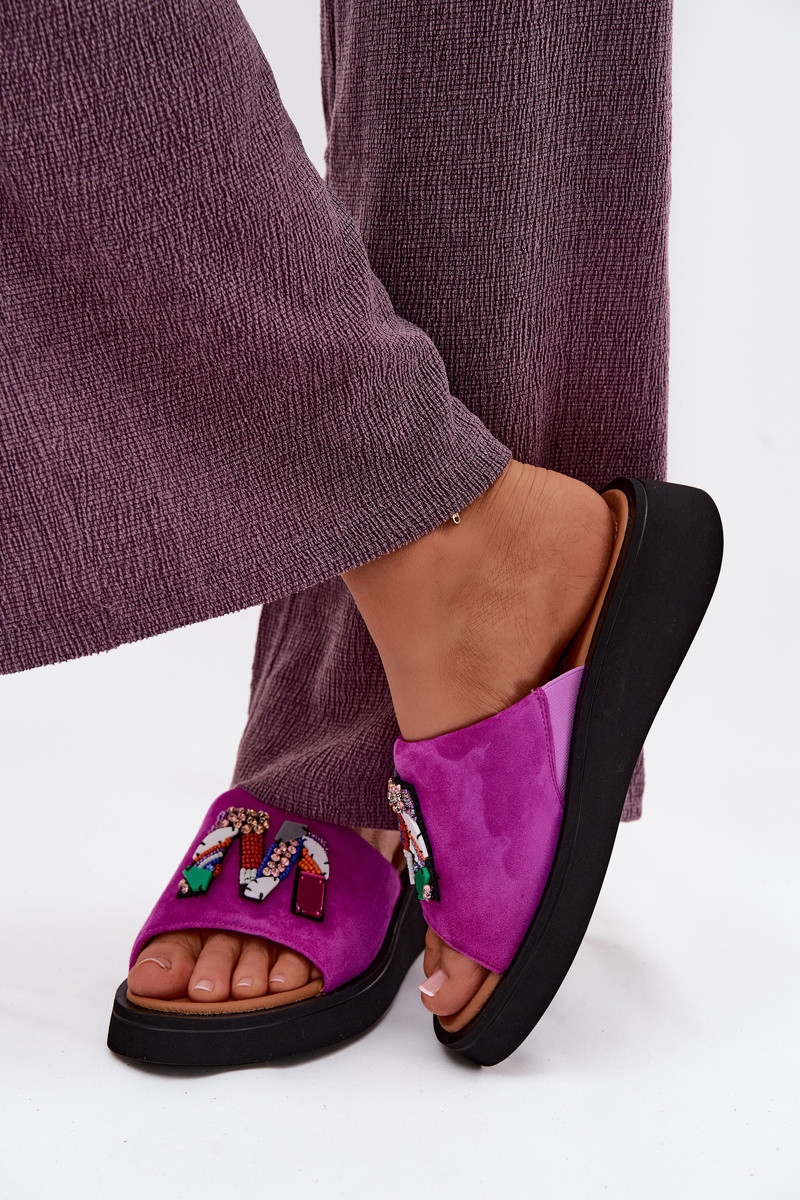 VINCEZAOda Moteriškos zomšinės šlepetės su ornamentais su platforma Vinceza 66942 rožinės spalvos