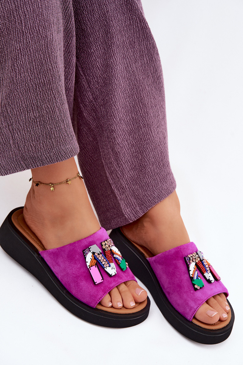Oda Moteriškos zomšinės šlepetės su ornamentais su platforma Vinceza 66942 rožinės spalvos