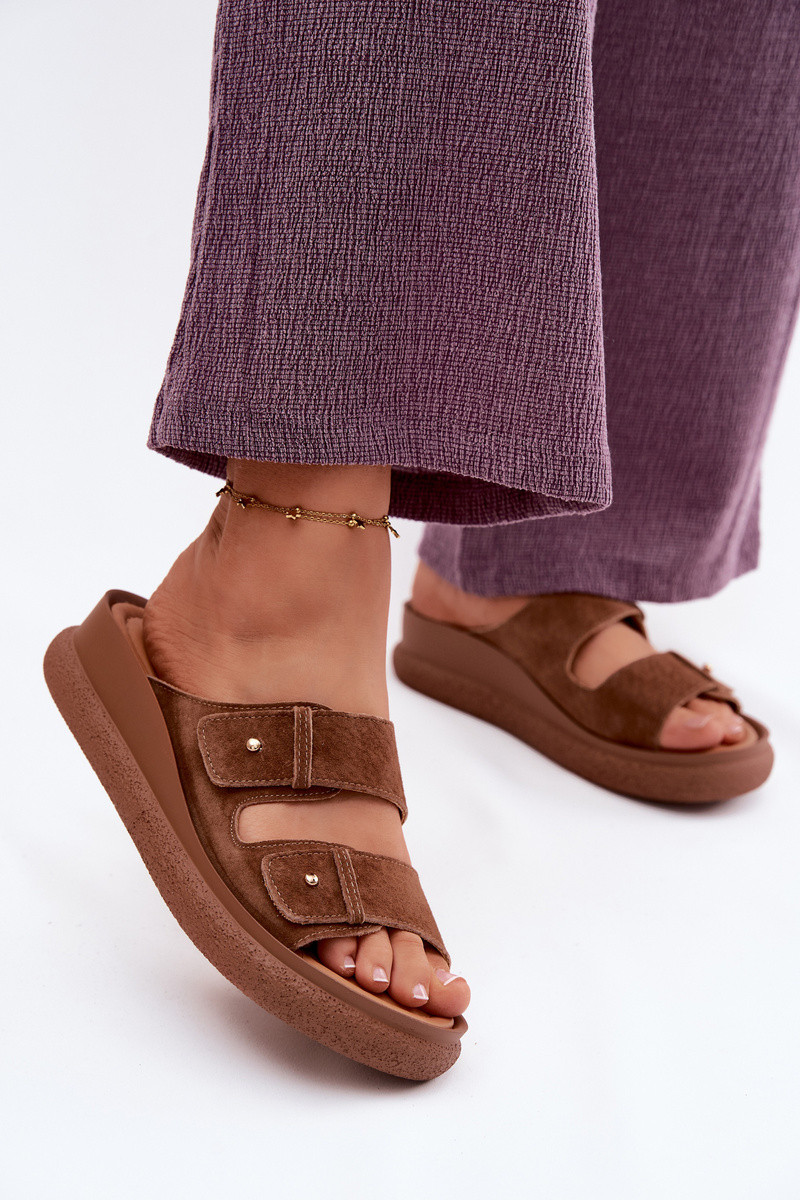 Oda Moteriškos zomšinės šlepetės su platforma Vinceza 66916 rudos spalvos
