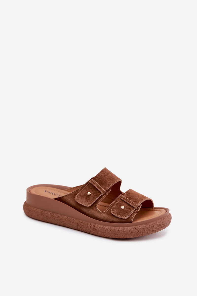VINCEZAOda Moteriškos zomšinės šlepetės su platforma Vinceza 66916 rudos spalvos