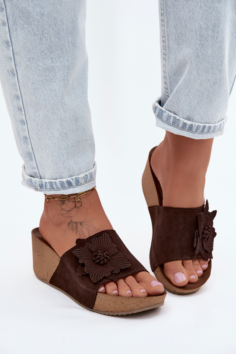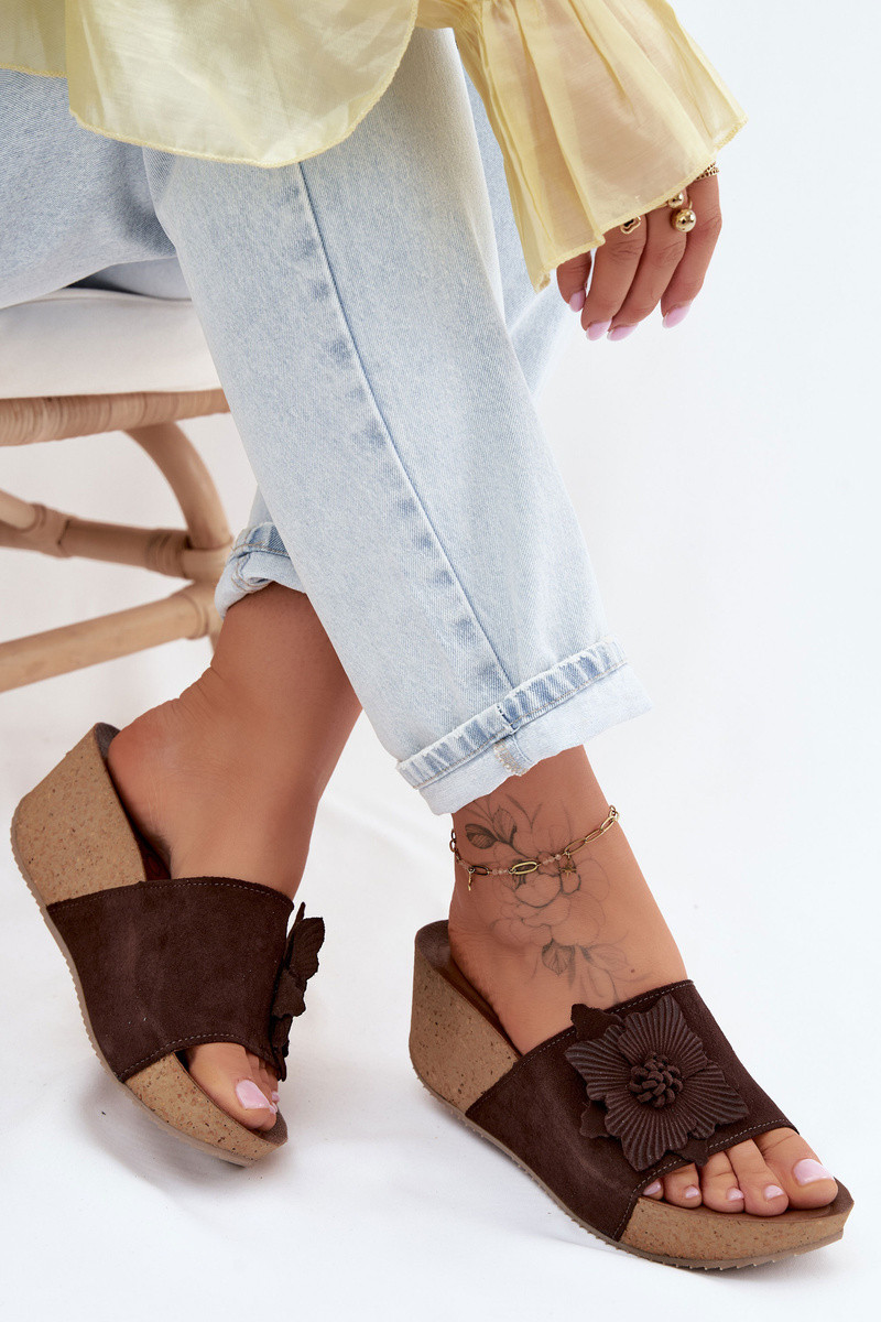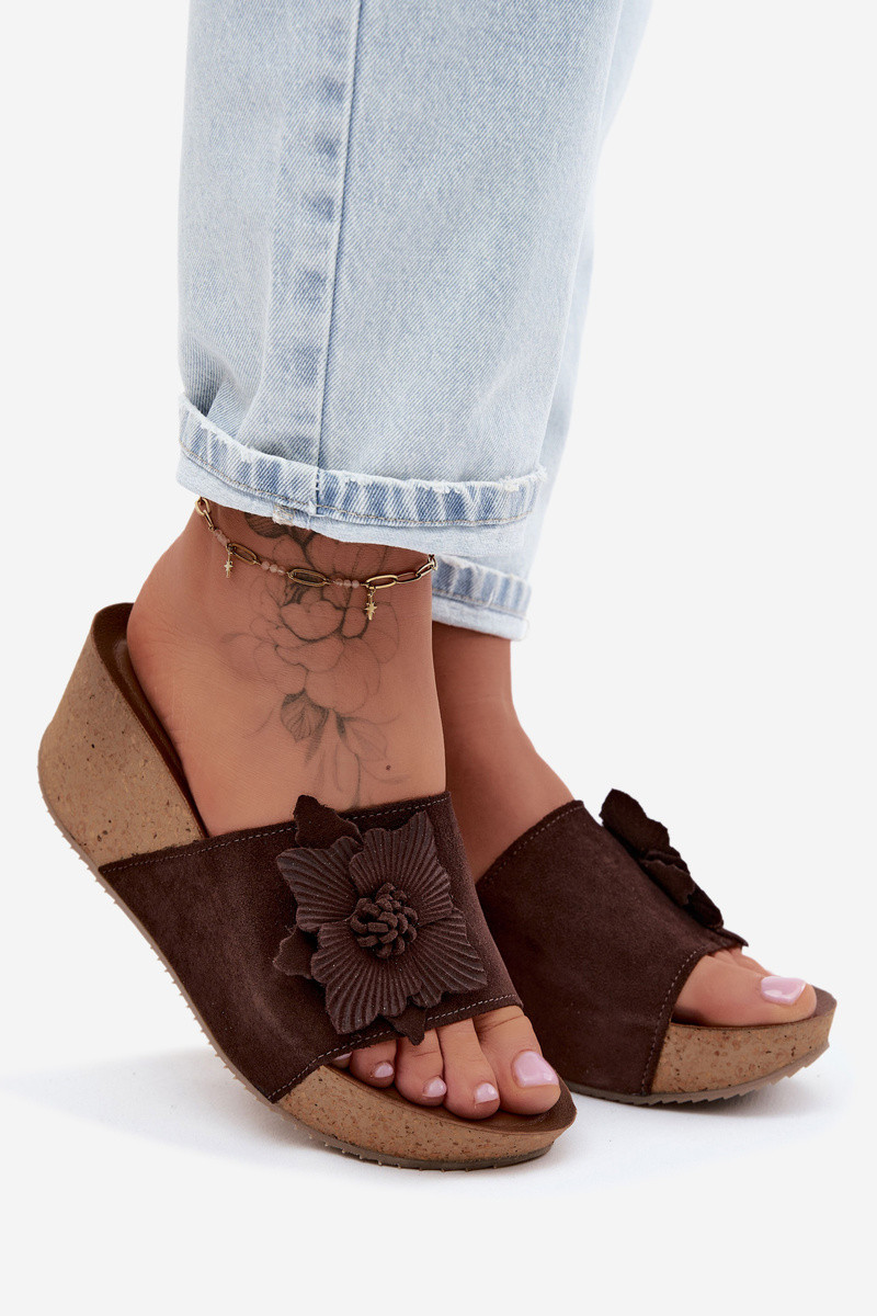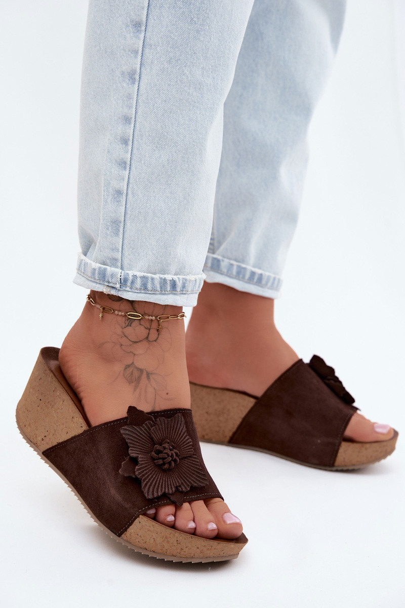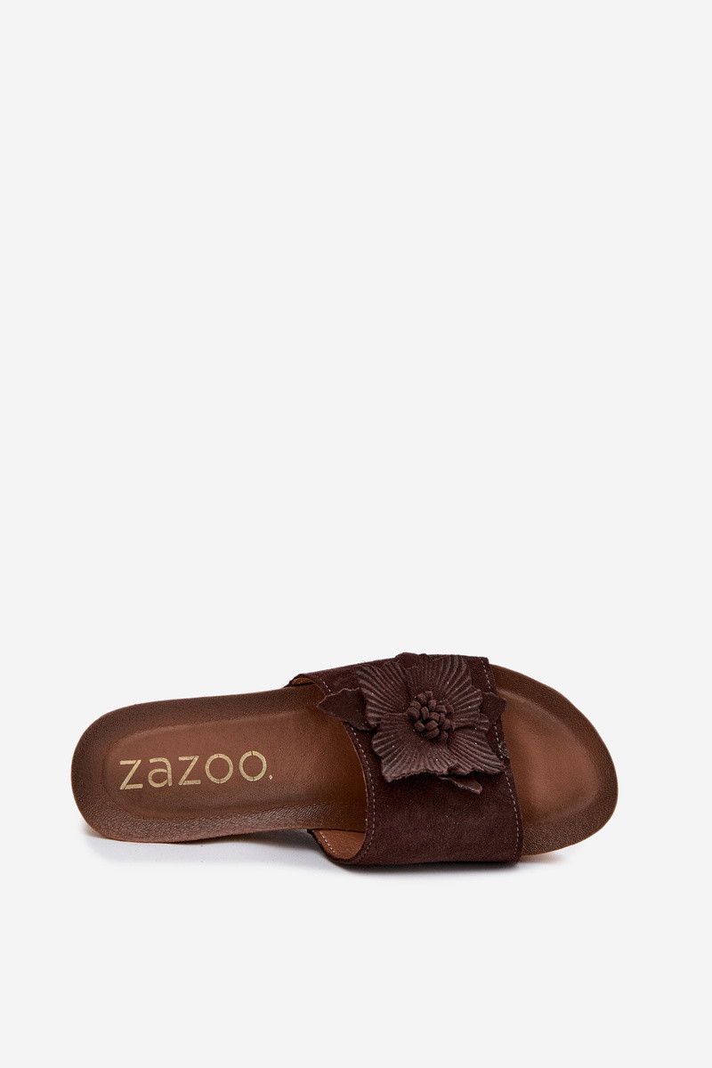 Oda Moteriškos zomšinės šlepetės su platforma Su puošniais su gėlytėmisem Zazoo 40312 CzekoladoĮe