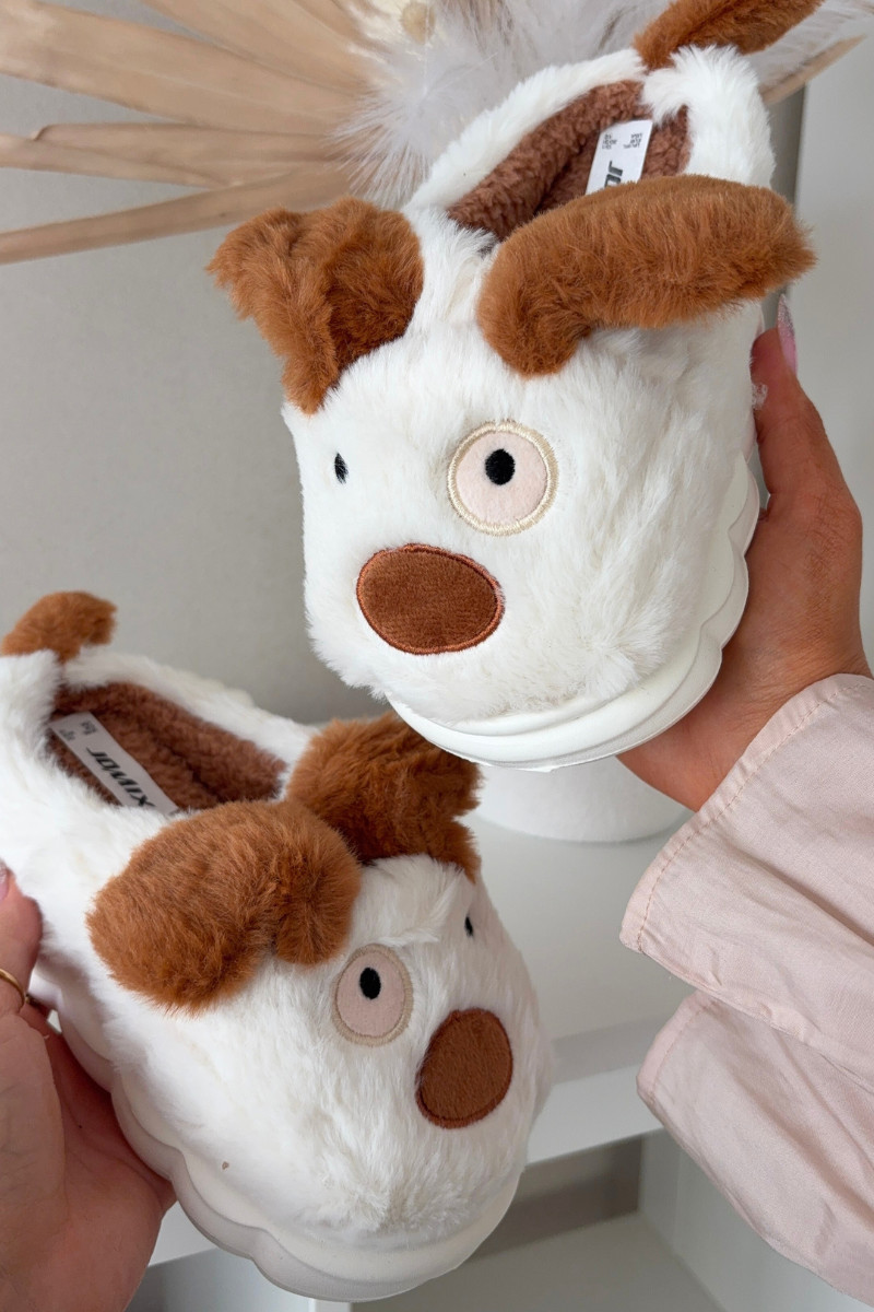 Rudos spalvos vaikiškos šlepetės su kailiuku „Šuniukai" Farnise
