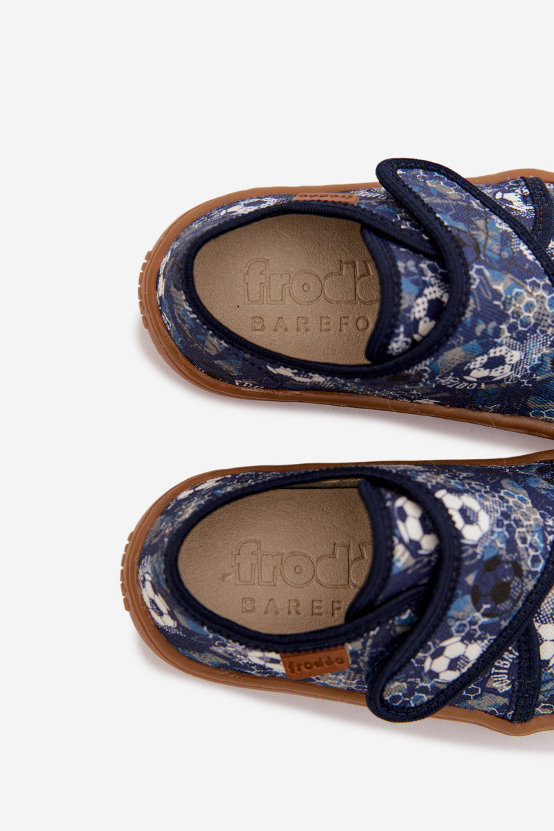 Vaikiškos berniukų šlepetės su lipniais užsegimais Barefoot su kamuoliais Froddo G1700438-6 tamsiai mėlynos spalvos