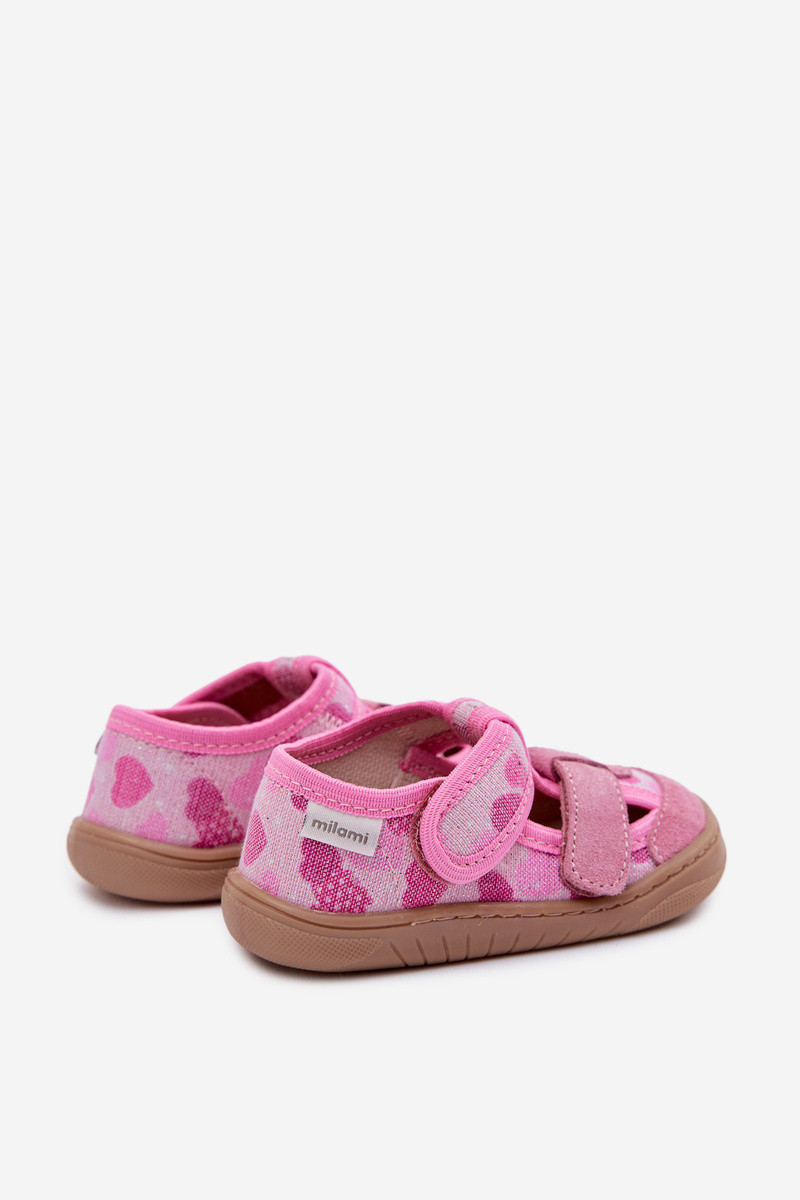 Šlepetės Barefoot Vaikiški Milami su blizgesiu Širdyse rožinės spalvos Lumi