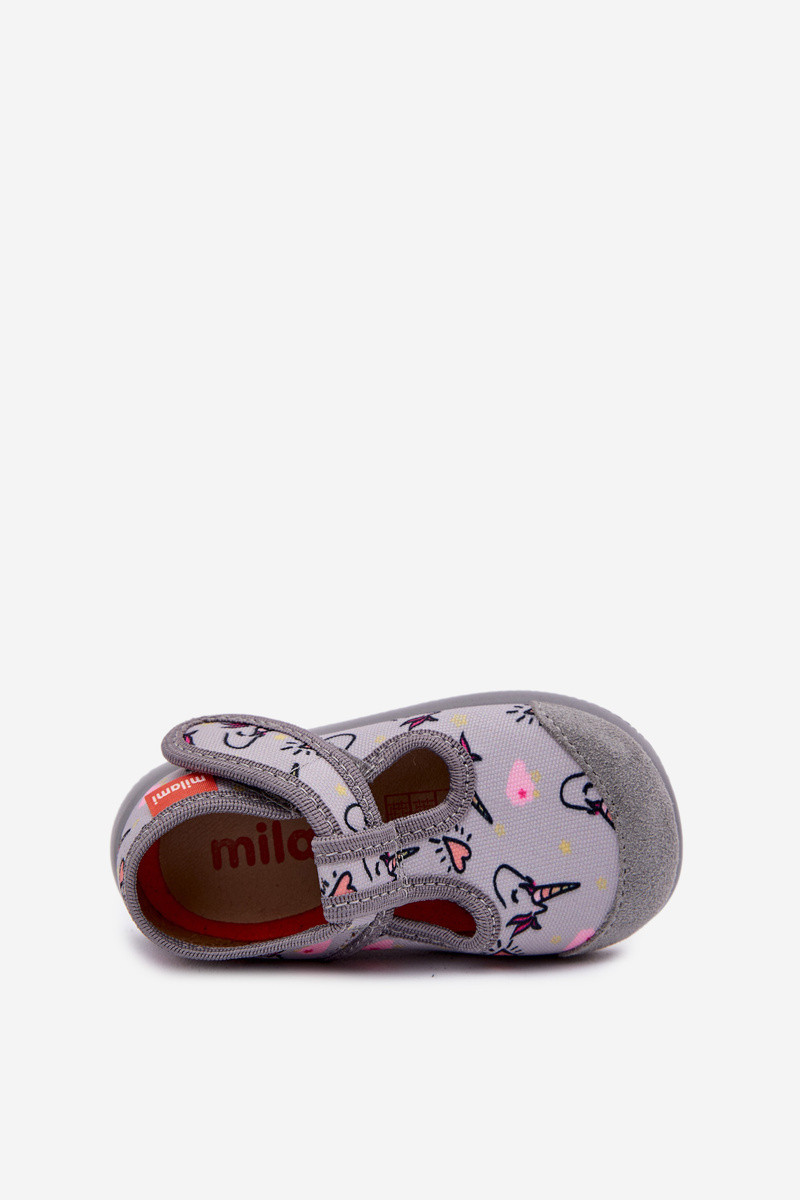 Šlepetės Milami Vaikiški Elastyczne su lipniais užsegimais Vienaragiaic pilkos spalvos Ambette