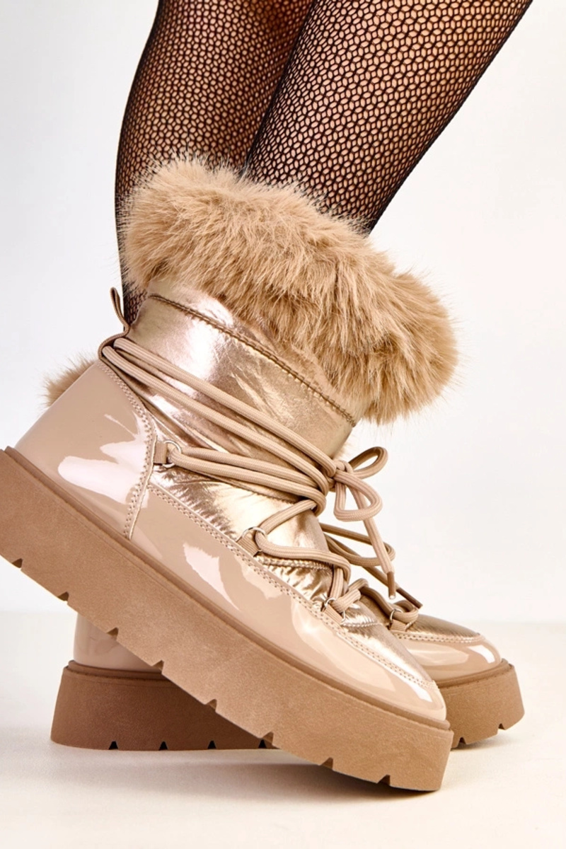 Smėliniai sniego batai su raišteliais ir lakuotu akcentu Garis