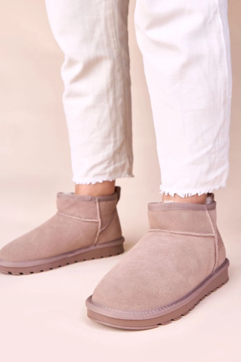 Pilki sniego batai iš natūralios zomšo odos, šiltinti kailiu Matilda