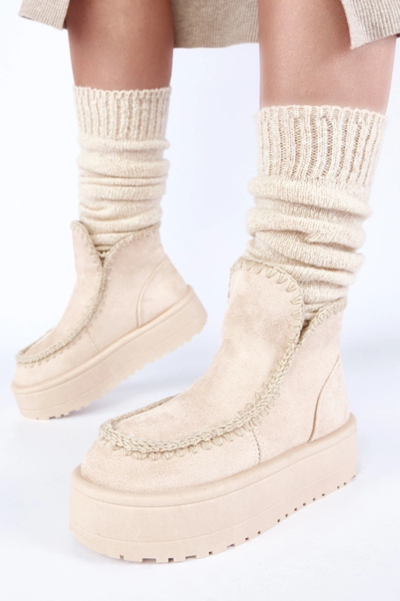 Šviesiai smėlio spalvos sniego batai platformoje su dekoratyviu siuviniu Alwena