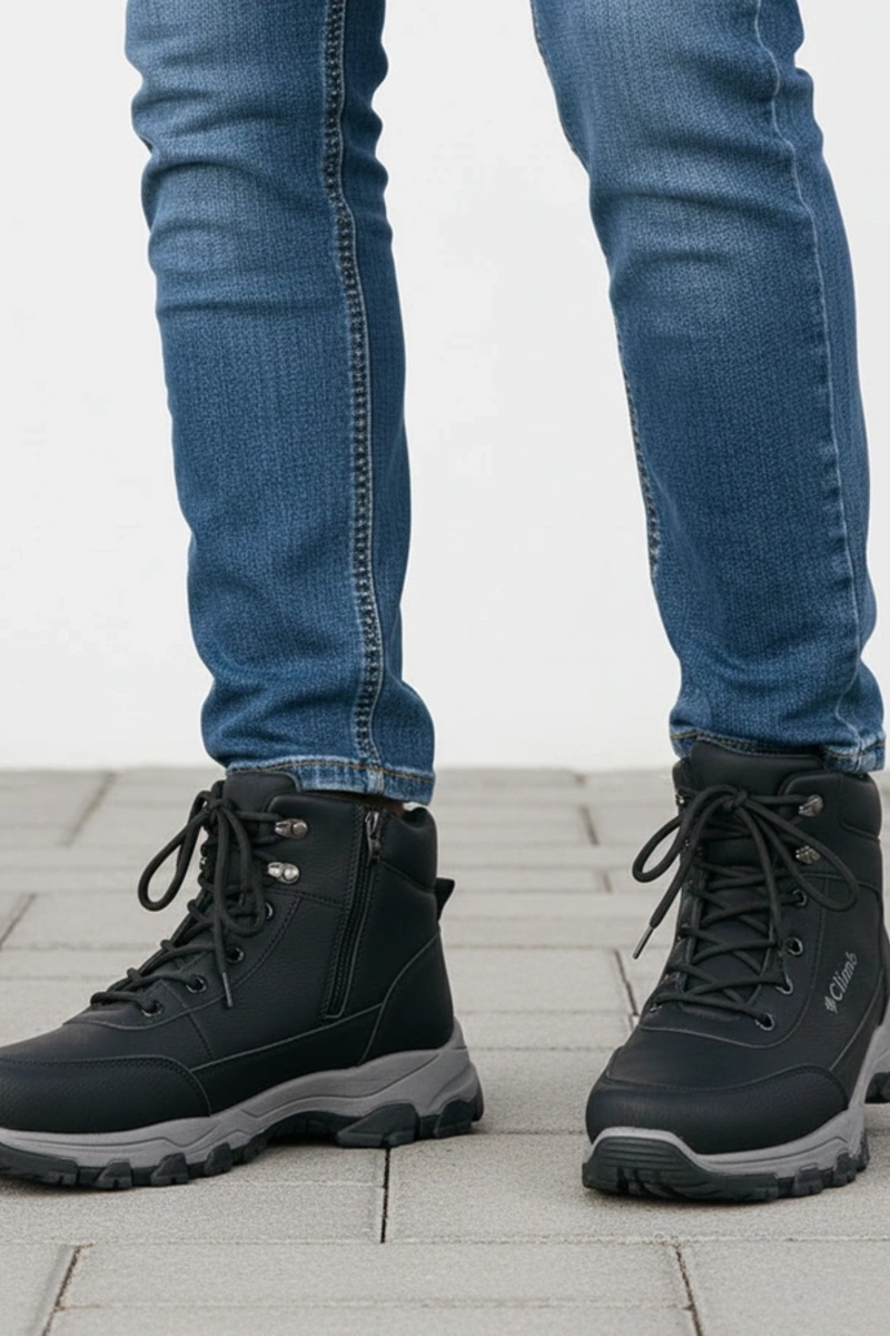 Juodi vyriški šiltinti traperiai ant paaukštinto pado Pedro