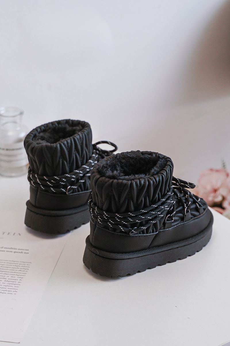 Vaikiški pašiltinti sniego batai su kailiuku viduje juodos spalvos