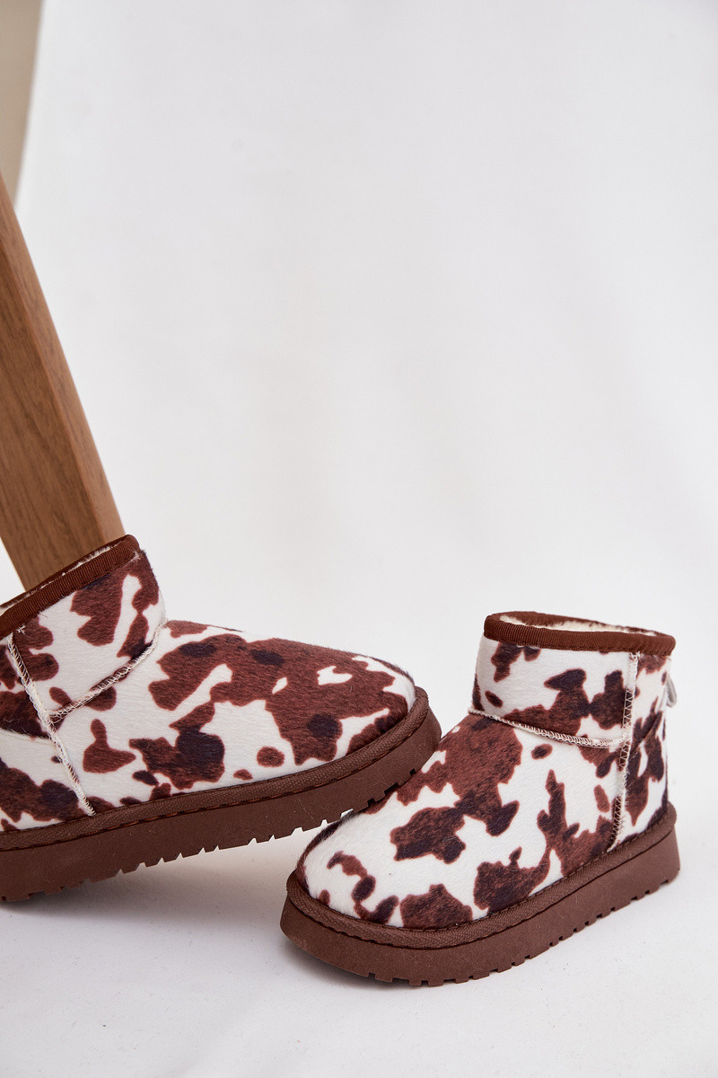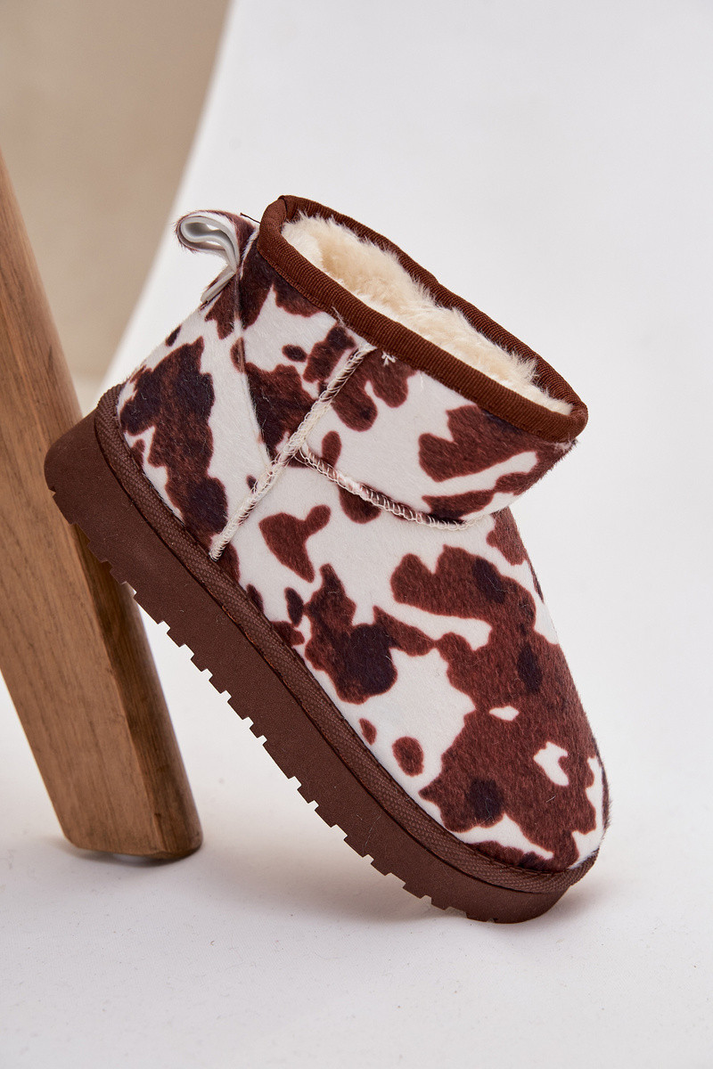 Baltos-rudos spalvos šilti vaikiški/jaunimo sniego batai su kailiuku viduje Mireya