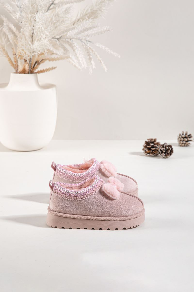 Vaikiški sniego batai su siuvinėjimu ir kaspinu, rožinės spalvos Daven